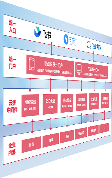 对协作平台提供支持服务,,支持企业应用与协作平台对接,,,包含组织同步、、消息集成、、待办集成等。。。。支持目前主流的协作平台:钉钉、、企微和飞书。。。。